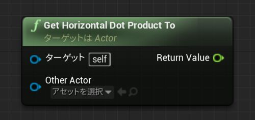今回「GetHorizontalDotProductTo」という気になるノードを見つけたので どういうノードなのかを解説します。 このノードは OtherActorが、ターゲットの前面・後面のどちら側にいるのかを「1」~「-1」の値で返してくれます。 ・・・よくわかんないですよね…